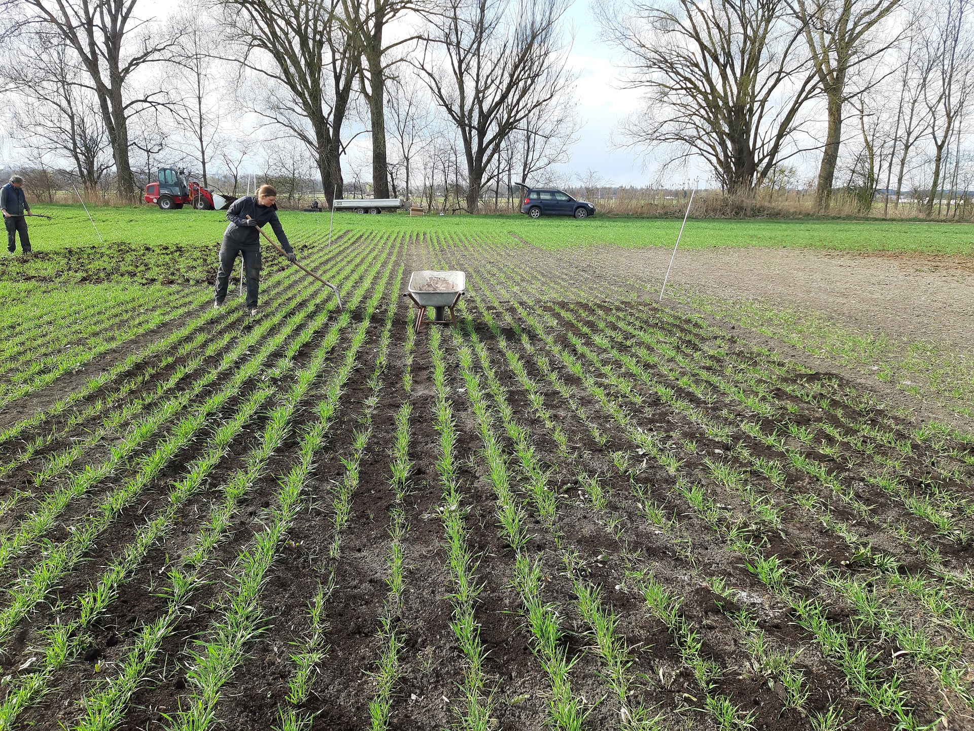 In diesem Versuch geht er der Frage nach, wie sich die Düngung mit unterschiedlichen bewährten und alternativen Phosphordüngern wie RhizoVital (P-aufschließende Bakterienstämme) und Struvit (P-Recyclingdünger aus Kläranlagen) auf den P-Gehalt der Sprossmasse und den Ertrag von Winterweizen auswirken. Da Struvit bisher nicht für den Einsatz im ökologischen Landbau zugelassen ist, wurde für den Versuch eine Ausnahmegenehmigung beantragt.