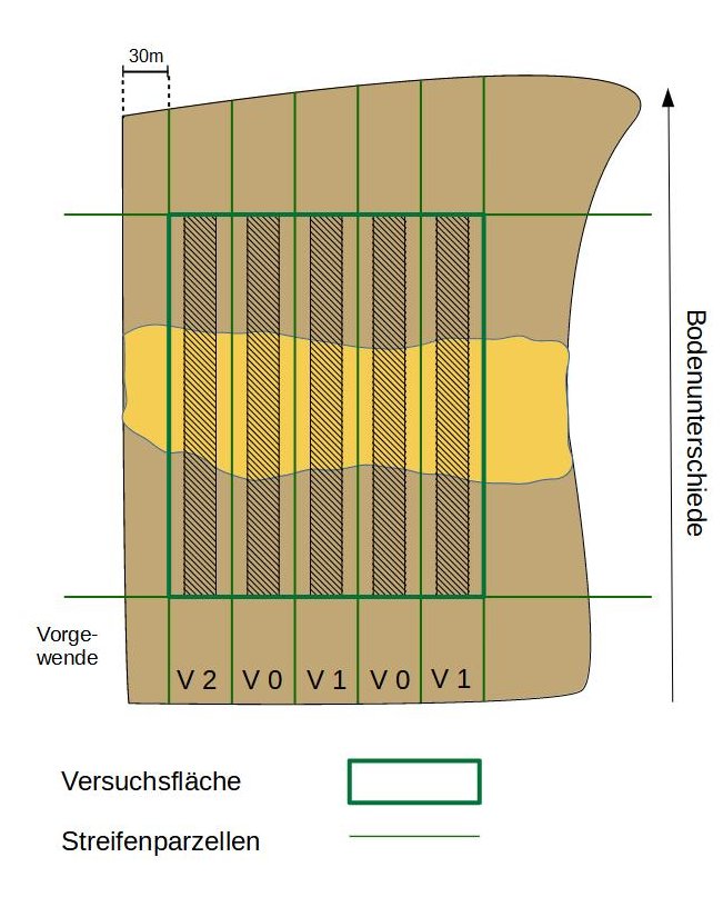 | Faktorstufen | Kontrolle (keine Düngung), gedüngt (1500 kg/ha), gedüngt (2000 kg/ha) |