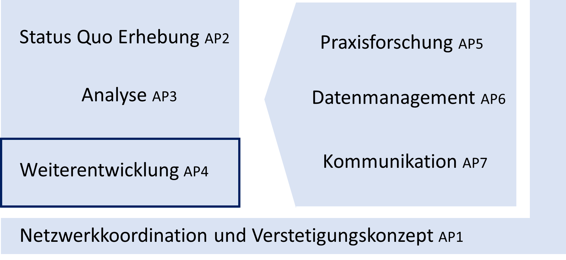 Über die AG Verstetigungskonzept wird zu Projektende ein Konzept zum Verstetigen der im Konsortium entwickelten Strukturen und Instrumente unter Mitarbeit aller Arbeitspakete entwickelt.